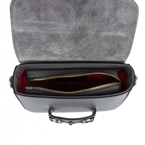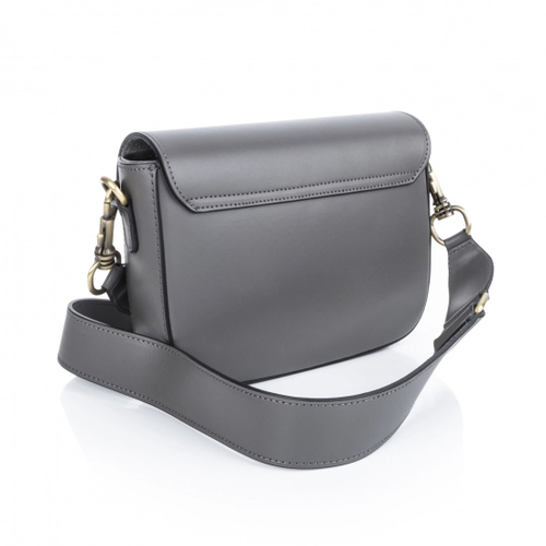Сумка крос-боді шкіряна з широким ременем та великою пряжкою - темно-сірий